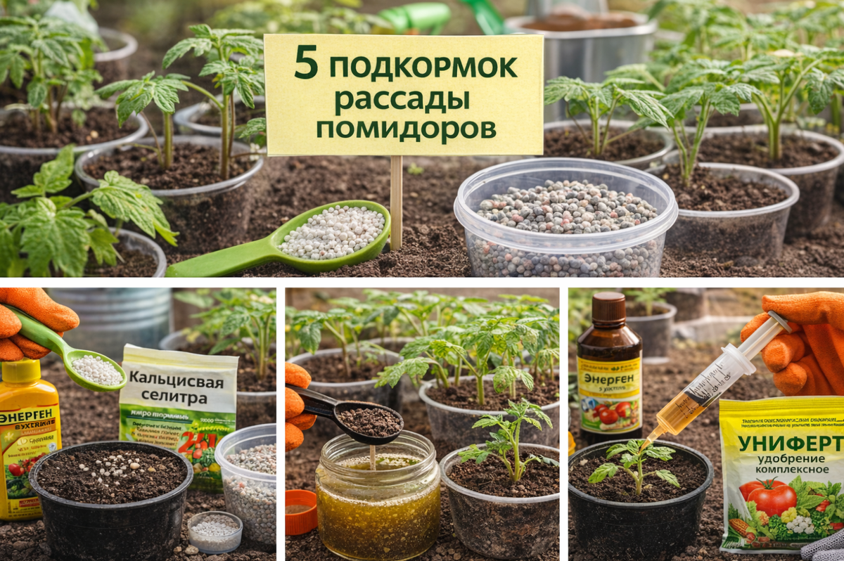 Правильная подкормка рассады томатов — один из главных секретов сильных и здоровых растений. Если вовремя дать рассаде необходимые питательные вещества, она вырастет крепкой, с мощной корневой системой и легко перенесёт пересадку в теплицу или открытый грунт. Я много лет использую простую схему из 5 подкормок, которая помогает получить отличную рассаду. Сохраняйте — она обязательно пригодится в новом сезоне. Первую подкормку проводят на третий день после того, как сеянцы развернули семядольные листочки. Раствор: Такой раствор помогает рассаде быстрее тронуться в рост и предотвращает вытягивание растений. Проводится через неделю после первой. Для неё используют препарат Энерген. Его разводят водой до цвета слабого чая. Эта подкормка стимулирует рост корней и повышает устойчивость рассады к стрессам. Её проводят, когда на растениях появились две пары настоящих листьев. Раствор готовится так: Залейте удобрение 1 литром горячей воды и оставьте настаиваться на 24 часа. Фосфор очень важен д