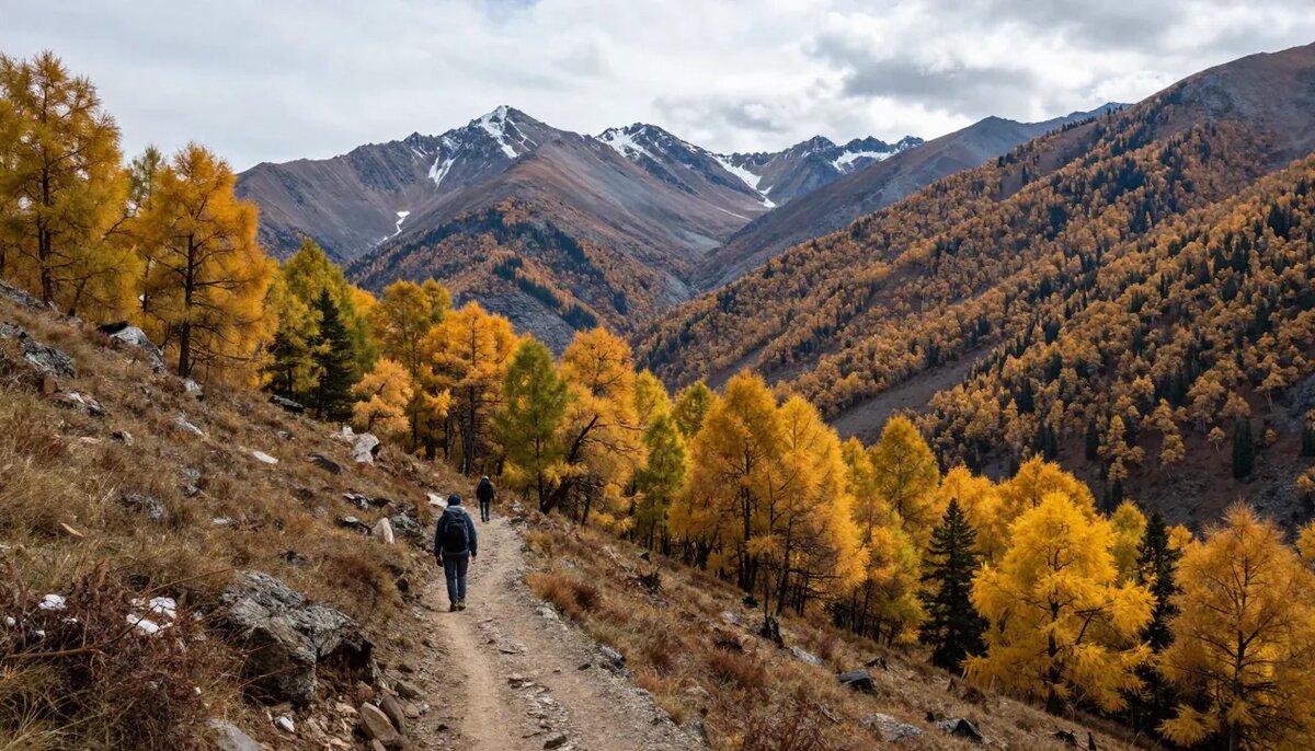 Сентябрь и начало октября — пожалуй, лучшее время для поездки на Алтай. Золотая осень окрашивает горные долины в невероятные цвета, туристов становится меньше, а погода позволяет комфортно ходить в треккинговые маршруты. Средняя температура воздуха в сентябре — 10–18°C в зависимости от высоты.