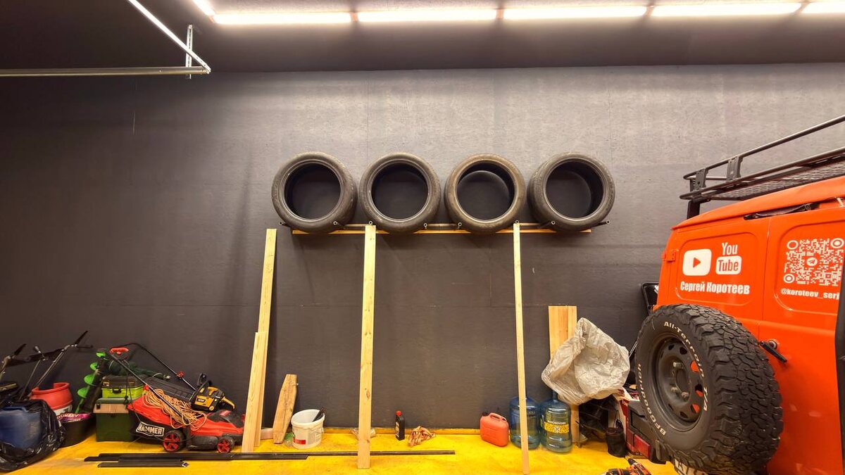 Сделал прекрасную полку для колес. И теперь совмещаю полезное с приятным.