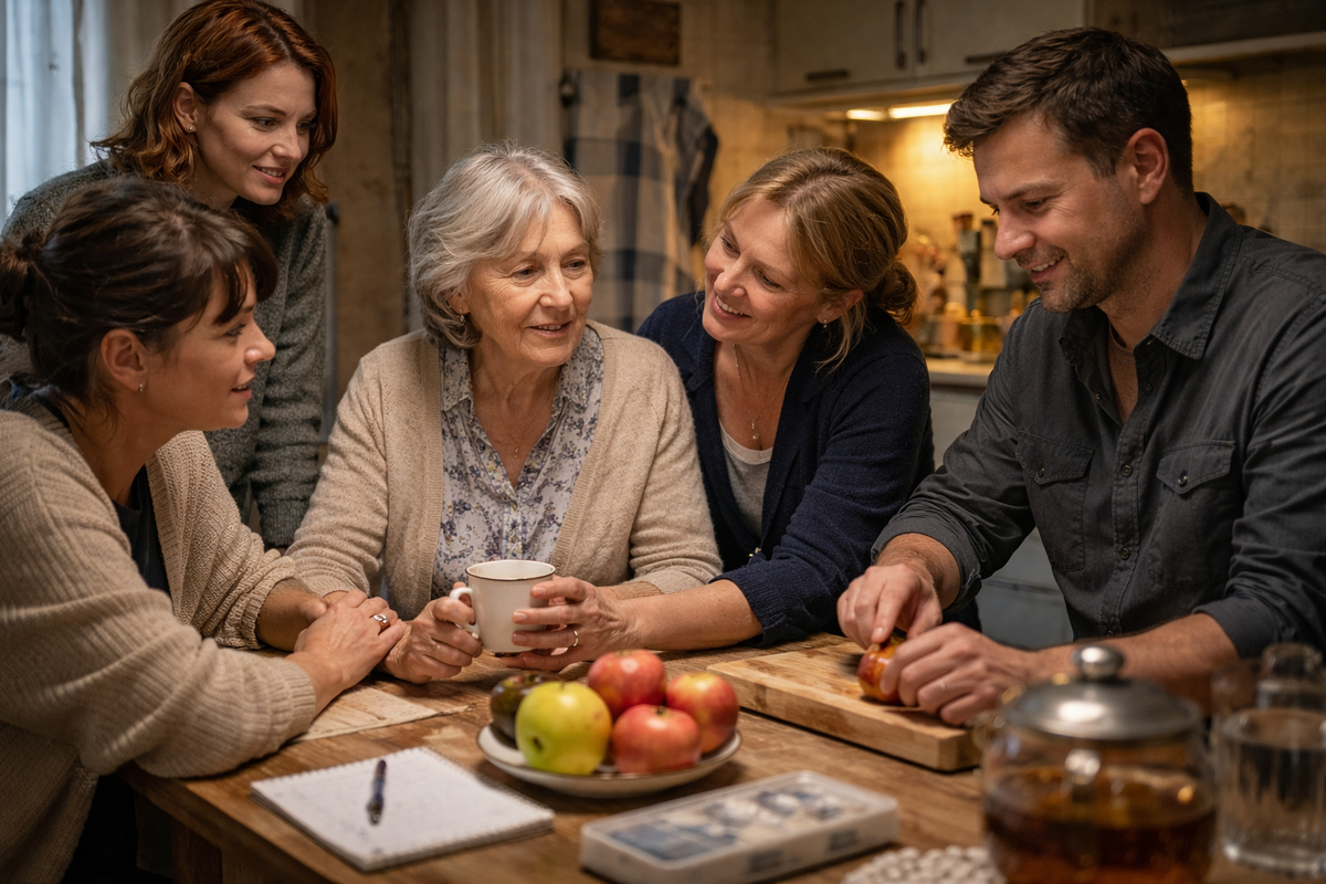 Нина села рядом с матерью, взяла её ладони и начала рассказывать — не факты, не график лекарств, не про документы. Просто про то, как в детстве Валентина Петровна шила им новогодние костюмы. Как однажды Артём был зайцем и потерял ухо, а Нина — снежинкой и ревела, потому что ободок жал.