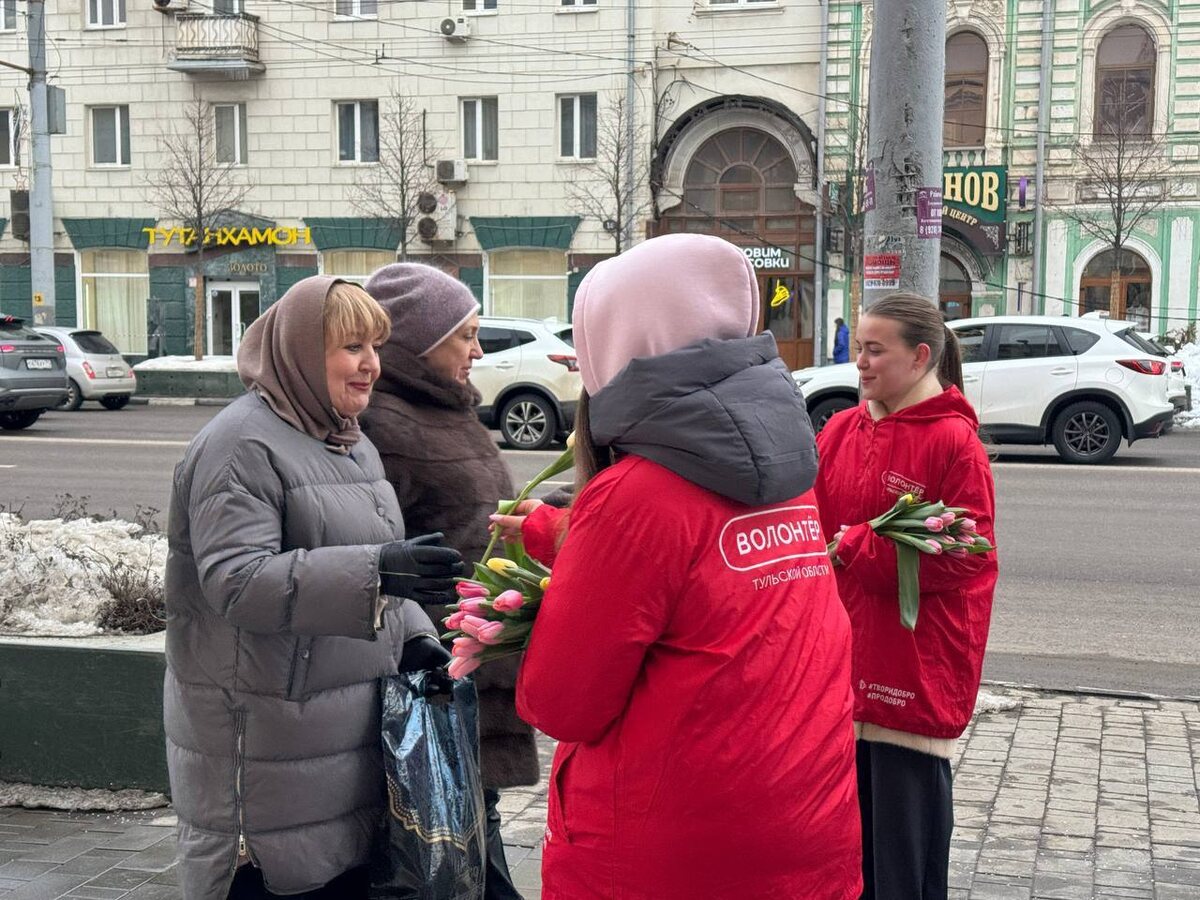 Сегодня, в преддверии Международного женского дня, в Туле проходила всероссийская акция «Вам, Любимые!». Волонтеры поздравляли женщин с наступающим праздником, а также дарили им цветы и хорошее настроение. Акция таким образом выражает благодарность женщинам, которые наполняют жизнь своей заботой, мудростью и силой. ПО ТЕМЕ: