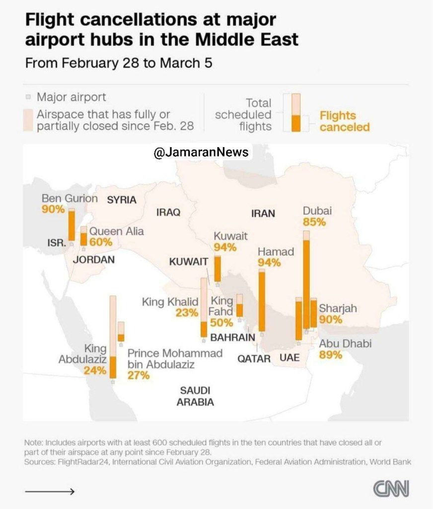Эскалация конфликта на Ближнем Востоке после ударов США и Израиля по Ирану нанесла серьезный удар по мировой авиационной отрасли. По данным сервиса Flightradar24, за первую неделю после начала атак было отменено около 14 тысяч запланированных рейсов. Согласно информации с сайта Flightradar24, с момента атаки США и Израиля на Иран 28 февраля крупные аэропорты в 10 странах отменили примерно 14 тысяч рейсов. Речь идет как о международных, так и о внутренних перелетах. Эксперты оценивают ущерб для авиаиндустрии в колоссальную сумму — до 9 триллионов долларов. В эту цифру входят не только прямые потери авиакомпаний от отмены рейсов, но и косвенные убытки смежных отраслей: туризма, гостиничного бизнеса и грузовых перевозок. Основной причиной массовой отмены рейсов стало закрытие воздушного пространства ряда стран Ближнего Востока и повышение уровня террористической угрозы в регионе. Авиакомпании были вынуждены экстренно менять маршруты или полностью сворачивать полетные программы, чтобы обес