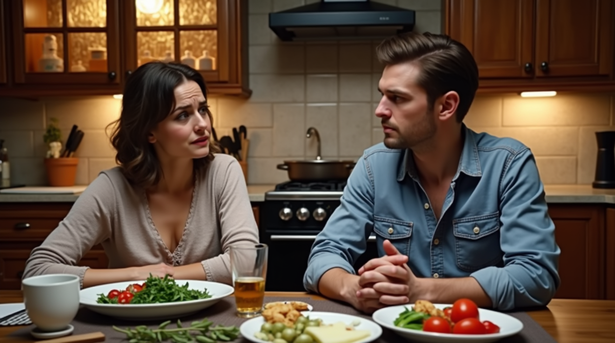 Он сидел за ужином, который они только что разогрели после того, как уложили спать Полину. Четырёхлетняя дочь мирно сопела в своей комнате, а в кухне, где обычно царил уютный полумрак от настольной лампы и запах свежезаваренного чая, теперь повисла тяжёлая тишина.