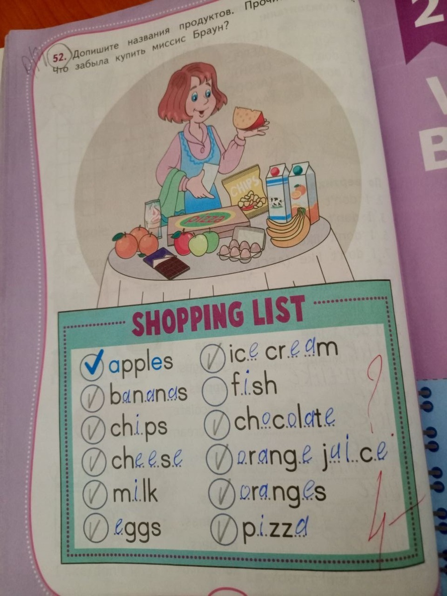 Я лично у него это задание проверяла. Вот, смотрите сами. Названия продуктов он дописал. Купленное галочкой отметил. Не купила тетенька рыбу – там галочки нет. За что четыре с минусом-то? Вроде на пять все сделано. У меня единственное предположение – может быть, надо было еще перевод слов подписать? В смысле, что учительница это дала в качестве дополнительного задания, а он ушами прохлопал? Но, даже если это и так, я смысла в таком задании не вижу. Надо же слова сравнить с картинкой и пометить те, что там есть. То есть понимать их надо, зачем тогда еще перевод? Впрочем, это все мои предположения. А вы как думаете? Особенно школьные учителя. Гляньте, пожалуйста, своим профессиональным глазом. Пишите, а также ставьте лайки и подписывайтесь на меня везде – узнаете много нового и интересного! Дзен: https://dzen.ru/krokoziabra