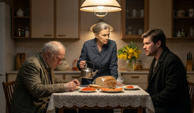 На кухне воцарилась тишина, от которой сводило челюсти. Вера Павловна механически помешивала чай, звякая ложечкой о край чашки. Андрей сел на край табуретки, не снимая куртки, и положил свой батон в пакете на стол. Рядом с икрой и семгой он выглядел бедно.