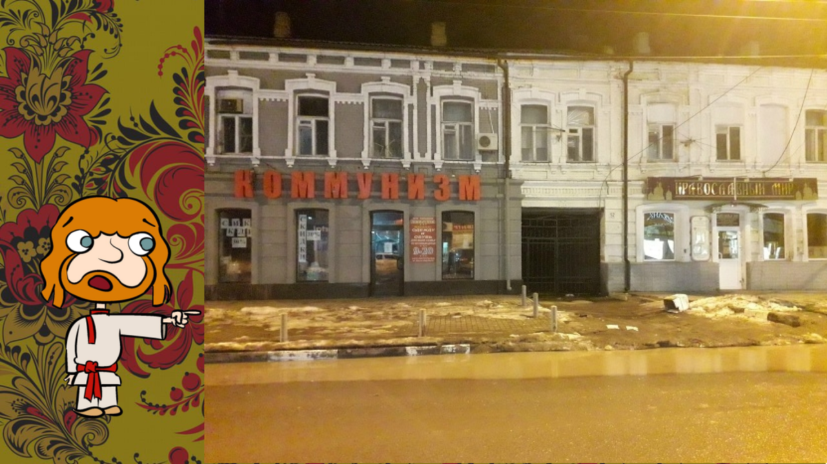 Ой, а что у нас сегодня? 8 марта! Поздравляю всю прекрасную половину читателей с вашим днем. Да будут цветы ароматными, косметика только здоровой и чтобы смеситель никогда не ломался. Давай так: сегодня у нас праздничный выпуск из 10 фото. Поехали! Мы умеем совмещать. Это ведь только нам может в голову прийти открыть в соседних домах магазин Коммунизм и Православный мир. Ну как же символично совмещено то, что всегда друг друга отрицало. А еще посмотрите на темный въезд во двор: ну какая метафора! Вот так выглядит наш отечественный капитализм. Как же мы любим деконструировать детство. Кот Леопольд предлагал всем жить дружно, но на самом деле был изворотливым манипулятором. Волк гонялся за зайцем, потому что у него не было друзей. Женя Лукашин задавал вопрос дереву, но не искал ответы в себе. Котенок Гав. Ну, в общем. Смотрите. Мы умеем делать внезапные шедевры. Однажды Эрнест Хэммингуей поспорил, что напишет самый короткий и трогательный рассказ. Думаю, вы прекрасно знаете эту историю.