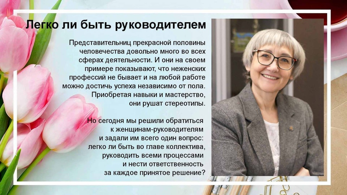 : – Когда задают вопрос, легко ли быть женщиной-руководителем, я всегда немного улыбаюсь. Потому что на этот вопрос нельзя сразу ответить, так как он содержит в себе скрытую дилемму: либо ты «женщина», либо ты «руководитель». Руководить институтом в современном мире – это всегда вызов. Это большая ответственность за научно-образовательную деятельность, студентов и коллектив, за достижения и развитие вуза. В сфере образования женский стиль управления является эффективным за счет эмпатии, умения слушать, интуиции, способности создавать в институте не только деловую, но и теплую корпоративную атмосферу. Мне кажется, что женщине-руководителю легче быть дипломатом, находить компромиссные решения, организовывать и мотивировать работников и студентов на выполнение поставленных задач. #Легко_ли_быть_руководителем