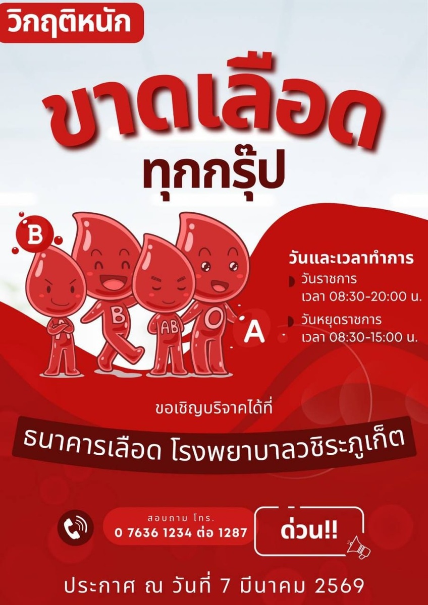Больница Vachira Phuket Hospital столкнулась с дефицитом донорской крови, причем достаточно острым, чтобы призыв о сдаче был распространен не банком крови, а руководством всей больницы. Сообщение было опубликовано на странице Vachira Phuket Hospital в субботу, 7 марта. Острая нехватка донорской крови Vachira Phuket Hospital сообщает о критической нехватке донорской крови всех групп. Мы обращаемся с просьбой к людям с хорошим состоянием здоровья прийти и сдать кровь, остро необходимую для спасения пациентов. Часы приема доноров: ▫️Рабочие дни: 08:30-20:00 ▫️Выходные и праздничные дни: 08:30-15:00 Банк крови больницы Vachira Phuket Hospital 4-й этаж, амбулаторный корпус Телефон для справок: 0 7636 1234, доб. 1287 – Vachira Phuket Hospital В сообщении больницы не уточняется, с чем связана острая нехватка крови в банке. Впрочем, одной из причин может быть возросшее в этом году число дорожных аварий. За январь-феврале 2026 года на острове Пхукет было зафиксировано 23 смертей в ДТП (2
