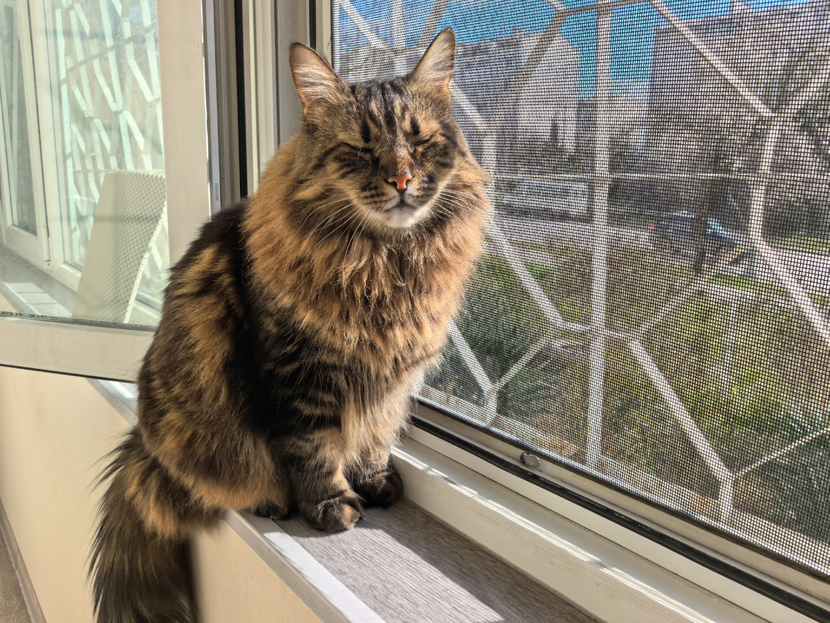 А потом переместился на свой диванчик и долго там спал. Только перед сном пришёл помесить халат: