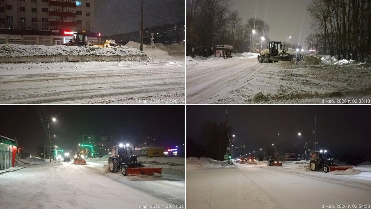 03.2026. Ночная смена СЧиП. 1 вывоз снега Социалистическая. Самосвалы 2 ед Погрузчик 1 ед 2 расширение ул Карцева. Погрузчик 2 ед 3 снежный полигон. Погрузчик 1 ед 4 мех очистка заездов тротуаров остановок за комплексом. Погрузчик 3 ед 5 мех очистка города. МТЗ отвал 9 ед. Грейдер 1 ед Маз КДМ 2 ед КАМАЗ КДМ 1 ед 6 перекидка снежного вала мосты Дюртюлинская, кораблик, Карла Маркса. МТЗ шнек 1 ед 👉 Подписаться на канал