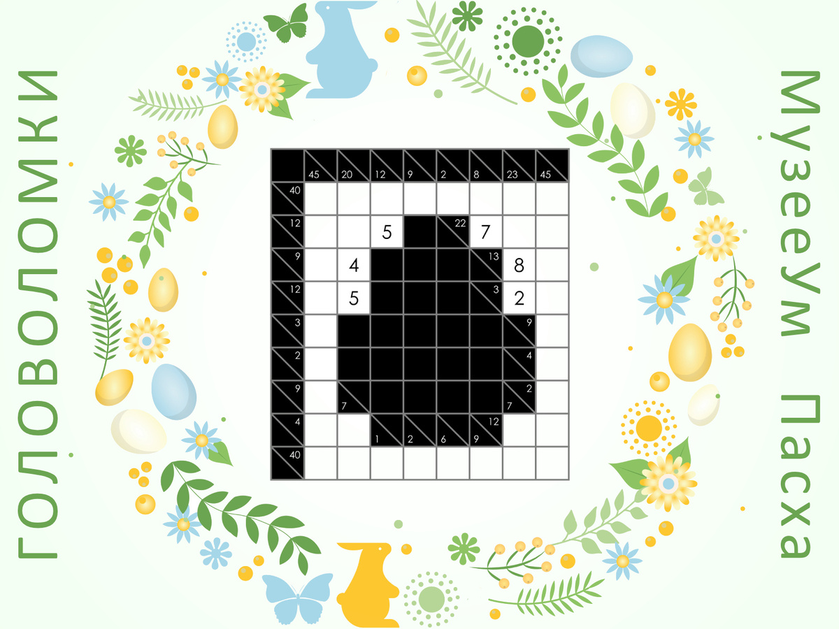 🎨 В этот день хочется подарить вам не только пасхальное вдохновение, но и интересную задачку. Эта головоломка украшена пасхальными мотивами и создана с любовью к вам. 🧩 Разгадывайте с удовольствием! 🌷 ❓ Решите головоломку: Несколько белых клеток, идущих подряд по горизонтали или по вертикали, называются блоком. Про каждый блок известна сумма цифр, которые должны стоять в этом блоке. Для горизонтальных блоков сумма записана непосредственно слева от блока, а для вертикальных — непосредственно сверху. Впишите во все белые клетки по одной цифре от 1 до 9 так, чтобы сумма цифр в каждом блоке сошлась с указанным числом, и чтобы в каждом блоке все цифры были различны. 🔗 Больше интересных пасхальных головоломок в библиотеке МузееУм: