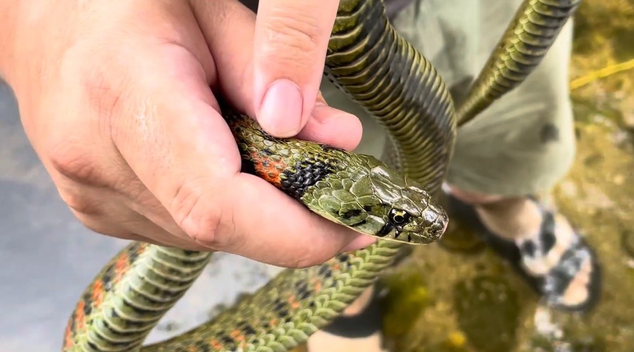 Тигровый уж (Rhabdophis tigrinus) — это змея, которая заставляет ученых переписывать учебники биологии. Если обыкновенный уж — это безобидный обитатель дачных прудов, то его «тигровый» кузен с Дальнего Востока — это настоящий биохимический завод на чешуйчатых лапах. Яркий, эффектный и невероятно коварный, он ломает стереотипы о том, какими должны быть змеи из семейства ужеобразных. Тигровый уж — это уникальное существо, которое одновременно является и ядовитым, и токсичным. В чем разница? Ядовитые животные вводят токсин при укусе (через зубы), а токсичные — аккумулируют яд в тканях тела. У тигрового ужа есть и то, и другое. У него имеются заднеборозчатые зубы с ядом, разрушающим кровь, а на шее расположены особые нуходорзальные железы, которые выделяют едкий секрет. Это делает его одним из самых защищенных существ в своей среде обитания. Самый поразительный факт заключается в том, что тигровый уж не производит яд для своих шейных желез самостоятельно. Он крадет его у своей еды. Питаясь