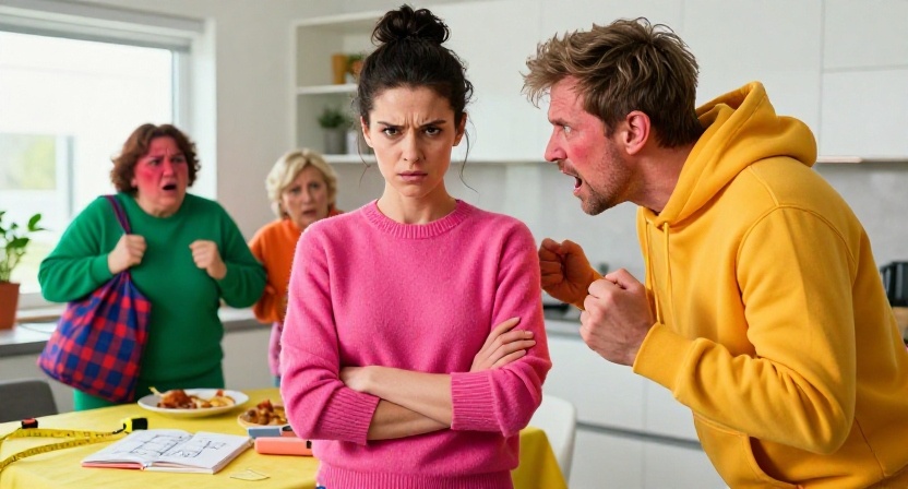 За столом, застеленным её светлой скатертью, сидела Зинаида Игоревна, как председатель комитета по чужой жизни. Рядом — грузная тётка лет пятидесяти пяти в малиновом свитере, с яркими ногтями и цепким взглядом. На табуретке у окна разместился Витя, её муж, и с деловым видом грыз куриную ножку. Посреди стола лежали рулетка, карандаш, блокнот и раскрытый каталог мебели. Её вазу с сухими ветками сдвинули к мойке, прямо рядом с миской, в которой кто-то оставил жирную ложку.
