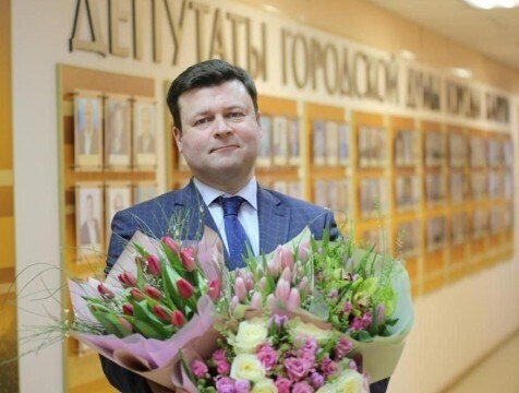 Председатель гордумы Калуги Юрий Моисеев поздравил женщин с 8 Марта.