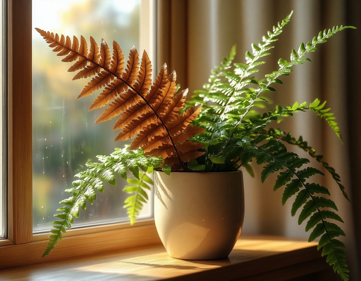 Он любит яркий, но рассеянный свет. Южный подоконник без притенения — это палящее солнце, которое выжигает нежные вайи за пару часов. Листья становятся бледными, покрываются сухими светлыми пятнами, скручиваются и отмирают.