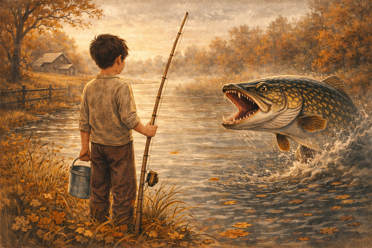 То было моё первое настоящее противостояние с этим грозным хищником. И быть может, тогда же, в том тихом осеннем пруду, среди жёлтой травы, мутной воды и коровьих следов, во мне навсегда родилась любовь к хищной рыбалке - любовь крепкая, упрямая, живая и поныне, спустя четверть века...