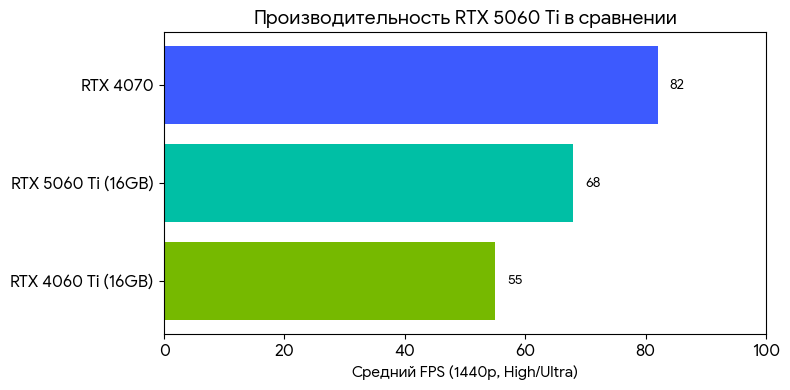 RTX 5060 Ti 16GB позиционируется как решение для «ультимативного» гейминга в 1080p и уверенного 1440p с использованием трассировки лучей. Поддержка DLSS 4.0 и обновленных ядер Tensor 5-го поколения позволяет значительно увеличить частоту кадров в тяжелых проектах.