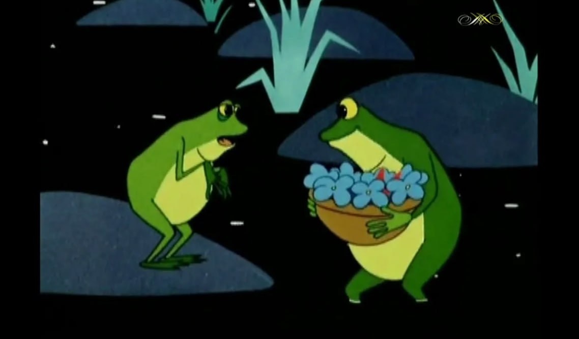 Жабы из мультфильма "Дюймовочка" наслаждаются отдыхом и едой