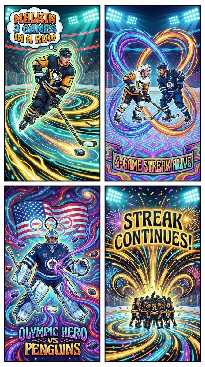 Герой олимпийского финала, вратарь Виннипега Коннор Хеллебайк не сумел отразить четыре броска Пингвинз в основное время и два в серии буллитов.