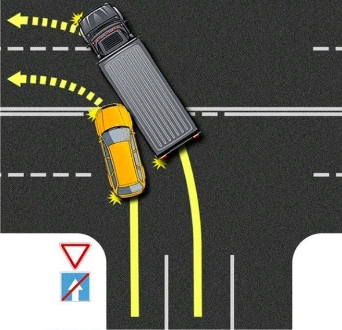 Дорогие читатели, если есть возможность поддержите нас стеллами, это можно сказать суперлайк! Автомобильные аварии случаются ежедневно, и порой разобраться в причинах происшествия бывает непросто даже профессионалам. Недавно в нашу юридическую консультацию обратился водитель, попавший в серьёзное ДТП. Его ситуация наглядно демонстрирует, насколько важны знания ПДД и умение правильно оценивать дорожную обстановку. Водитель рассказал следующее: он двигался на легковом автомобиле и приближался к перекрестку, намереваясь совершить левый поворот. Справа от него находился грузовой автомобиль с прицепом, который тоже собирался повернуть налево. Во время маневра произошло ДТП — грузовик буквально подмял под себя легковую машину. Самое неприятное, что водитель грузовика категорически отказался признавать свою вину и утверждал, будто авария случилась исключительно по вине владельца легковушки. Водитель грузовика просто сказал- Ты подлез под меня! Водитель оказался в сложной ситуации: он хотел по