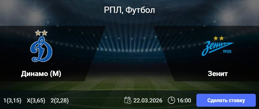 Статистика Динамо: Статистика указывает на высокую зрелищность матчей с участием москвичей: в пяти из семи последних игр в Премьер-лиге фиксировалось не менее трех взятий ворот. На домашней арене «Динамо» демонстрирует завидную атакующую мощь, отличаясь минимум дважды в шести из семи крайних встреч чемпионата. Фактор своего поля играет важную роль: команда не уступила в пяти из семи предыдущих домашних поединков (три победы и две ничьи). Кроме того, столичный клуб занимает второе место в лиге по числу точных ключевых передач: 75. Стоит отметить стойкость «Динамо» в родных стенах против грандов: за 19 последних матчей они проиграли топ-клубам лишь дважды, причем оба раза обидчиками выступили земляки из Москвы. Статистика Зенита: Последние игры «Зенита» в Премьер-лиге не отличаются голевым изобилием: в семи из восьми случаев забивалось не более двух мячей. Выездная форма чемпионов вызывает определенные вопросы, так как они не смогли победить в семи из десяти предыдущих гостевых матчей