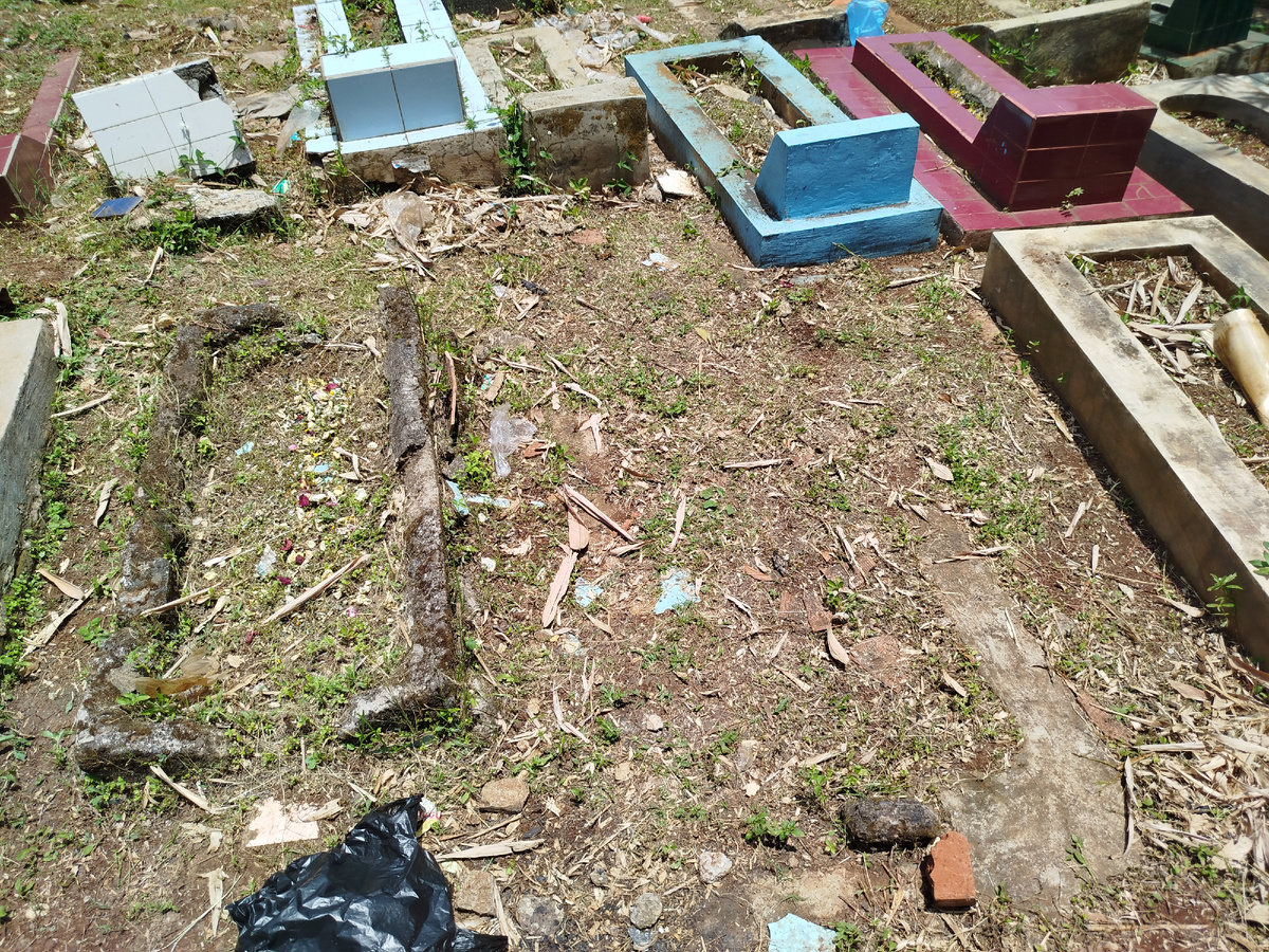 В воскресенье - второй день праздника Идул-Фитри - ходили на кладбище. Оно недалеко от нашего дома - в квартале через улицу. Большое, но не все могилы посещаемы одинаково. Надо внимательно смотреть, чтобы вдруг не наступить на такую - контур едва заметен, почти сливается с землёй по цвету и совершенно не возвышается над ней