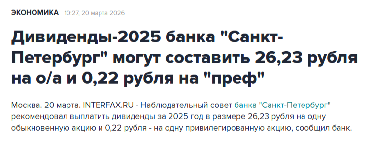 На днях свои решения по дивидендам дали советы директоров двух интересных дивидендных банков - Банк СПБ и Банк Авангард - давайте их разберем. Итак, Банк Санкт-Петербург собирается выплатить 26,23 рубля дивидендов на обыкновенную акцию. Когда банк опубликовал отчетность, я писал, что дивиденды могут составить от 16 до 26 рублей, причем полагал, что сумма ближе к нижней границе более вероятна: Однако результат оказался лучше моих ожиданий: в банке решили произвести выплату по верхней, а не по нижней или даже какой-то средней расчетной границе, что в целом должно обрадовать владельцев этих акций (я пока таковым не являюсь). Акции банка отреагировали на решение ростом, но не очень сильным - они поднялись примерно на 3% с 332 до 340 рублей, где, в общем-то до этого и находились пару месяцев. С учетом уже произведенной выплаты за первое полугодие дивиденд банка за 2025 год составит 42,84 рублей на акцию. От текущей цены 340 это 12,6%. Думаю, это нормальная доходность для нынешних условий, д
