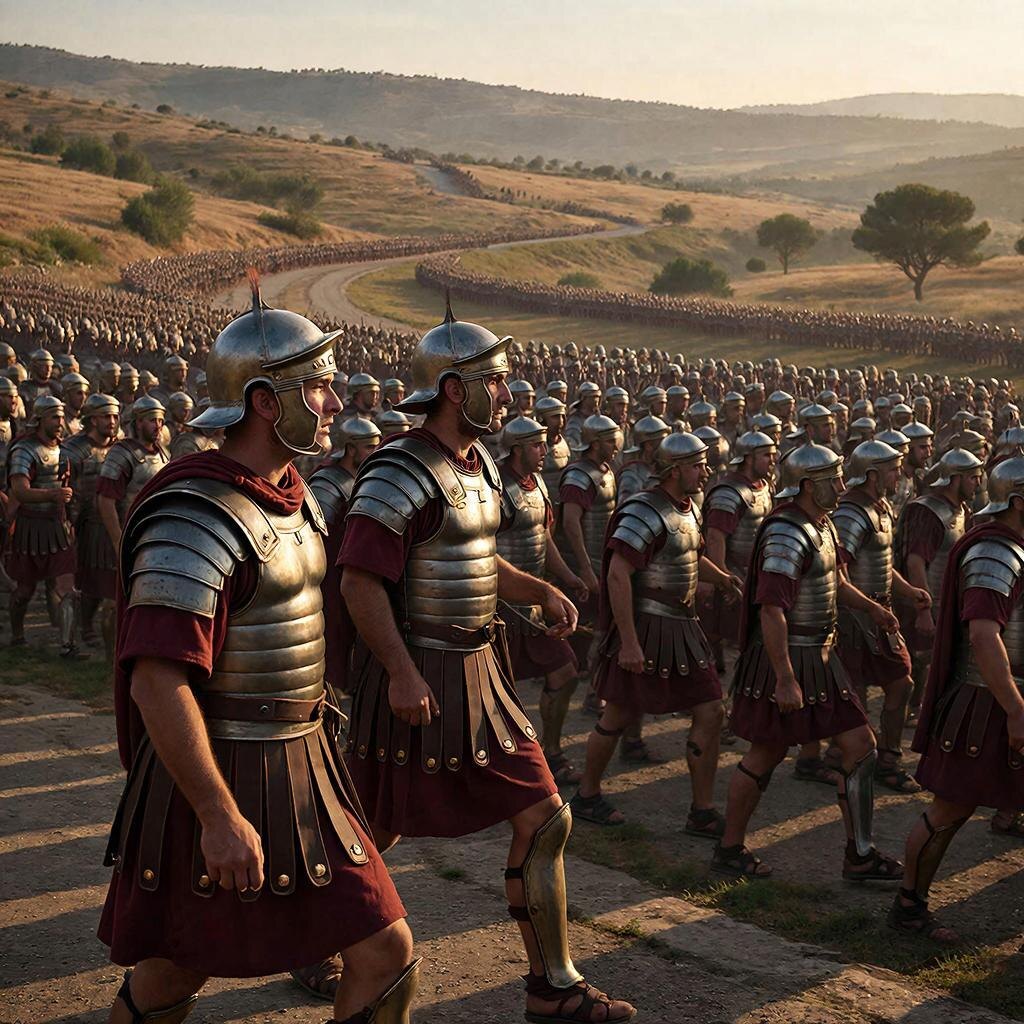 - Полибий отмечает строгую дисциплину и синхронность римских маршей.