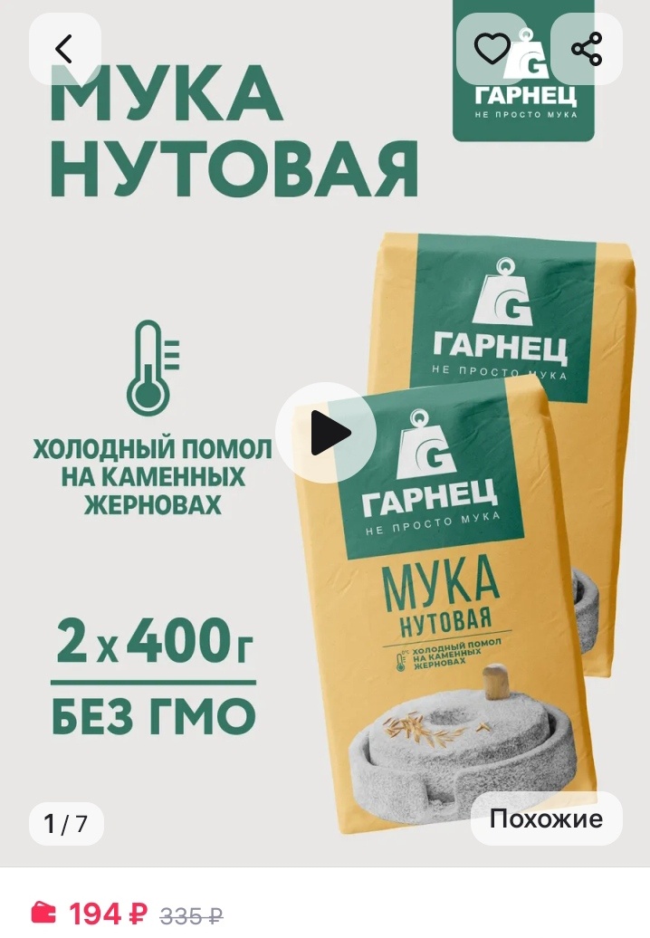 Вписала муку которую видела в магазинах,нутовую заказывали на Валтсберриз давно и кстати пока писала статью решила посмотреть цену на нутовую муку. Цены посмотрела мне они понравились и заказала две упаковки нутовой муки за 194 рубля.