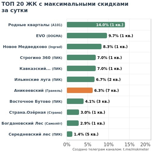 🟩 Честные скидки: 10 ЖК (17 кв.) 🟧 Маркетинг скидки: 6 ЖК (17 кв.) 💎 МАКСИМАЛЬНАЯ ЭКОНОМИЯ 🏆 DOGMA • EVO └🔻2.6M → 26.5M • 3-к 102м² 🥈 A101 • Родные кварталы └🔻2.5M → 17.6M • 4-к 67м² 🥉 ПИК • Строгино 360 └🔻1.5M → 21.4M • 2-к 51м²❗️ 4️⃣ ПИК • Кавказский бульвар 51 └🔻1.3M → 19.1M • 2-к 55м²❗️ 5️⃣ Ingrad • Новое Медведково └🔻1.2M → 14.1M • 2-к 63м² 6️⃣ ПИК • Ильинские луга ├🔻1.0M → 15.5M • 2-к 67м² └🔻512к → 9.6M • 1-к 39м² 7️⃣ Страна • Страна.Озёрная └🔻777к → 25.9M • 2-к 52м² 🔑 САМЫЕ ДОСТУПНЫЕ 🏆 ПИК • Восточное Бутово ├🔻262к → 6.6M • Студия 29м² ├🔻314к → 7.9M • 1-к 35м² └🔻413к → 10.2M • 2-к 58м² 🥈 Самолёт • Богдановский Лес └🔻229к → 8.0M • 1-к 37м² 🥉 ПИК • Ильинские луга └🔻512к → 9.6M • 1-к 39м² 4️⃣ ПИК • Середневский лес ├🔻131к → 9.8M • 1-к 36м² ├🔻139к → 10.1M • 1-к 35м² └🔻141к → 10.6M • 1-к 36м² ❗️— лоту меньше месяца 👇 Полная статистика: 📲 В Telegram | 🌐 На MskMeter.ru