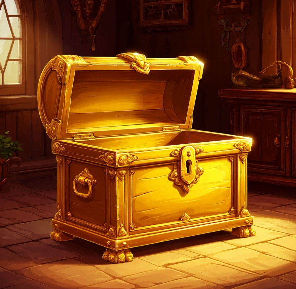 А жена тем временем как легла, так и уснула. Но нет, не таков был ее муж. Он глаз не смыкает, за всем наблюдает, тайну познать хочет... И вдруг ровно в полночь раздался страшный грохот, да такой сильный, что дворец задрожал, а крыша дворца раскрылась и внутрь комнаты влетел золотой сундук. Только он коснулся пола, жена вскочила с кровати, открыла крышку сундука и быстро вошла в него. Крышка захлопнулась, и золотой сундук снова поднялся вверх и исчез. Улетел золотой сундук, – и все стало так, как было до этого.