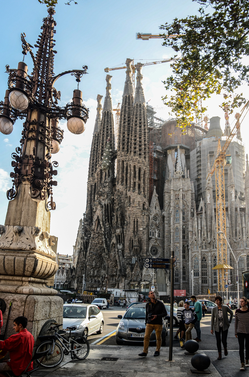 Я люблю архитектуру. И даже кое-что о ней знаю. Поэтому, когда я шел по горячей каталонской улице к мерцающим в перламутровой дымке шпилям храма, я ожидал встречи с шедевром. Но вблизи все оказалось иначе. Я бы не назвал это шедевром, это другое. Это другая архитектура. Как и у другого великого каталонца - Дали - другой сюрреализм, другая живопись. Пока стояли в очереди, я имел возможность внимательно осмотреть стены и пришел к интересным для себя выводам. Привычного нам храмового декора здесь почти нет. Здесь царство растительного модерна, особенно на фасаде Рождества. Но даже и стены - тесаный камень или бетон - цветом, фактурой создают визуальную неравномерность, некий муар, который как-бы растворяет плоскость стены. Фигуративная скульптура на фасаде Рождества скорее академична, но в некоторых лицах видно нарочитое или не нарочитое влияние средневековой скульптуры. Но есть скульптуры, которые отсылают нас к великим творениям Возрождения. А мы покидаем мягкий, нежный фасад Рождест