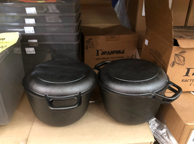 Начну с кухни, понравилась жаровня из чугуна с крышкой-сковородой. Объем 4 литра, вещь основательная — подойдет и для тушения, и для запекания. Можно использовать на любых плитах. Цена 1459 рублей. Как пишут читатели в отзывах, требует особой первоначальной подготовки.