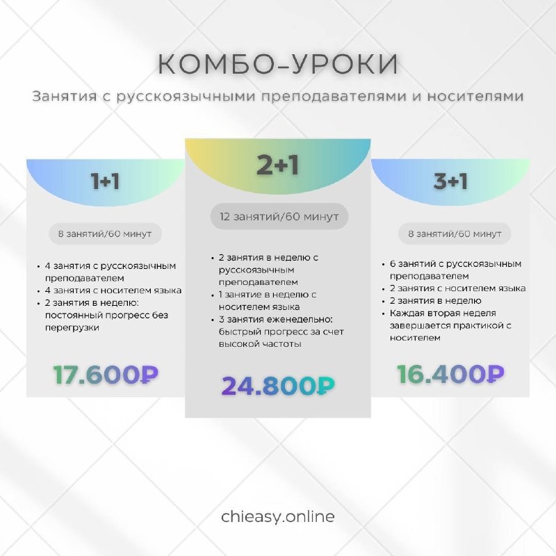 🇨🇳 Хотите наконец-то «раскачать» разговорный китайский, но при этом не перегореть? Наши комбо-тарифы — это занятия сразу с русскоязычным преподавателем и носителем языка. Такой формат помогает быстро понять грамматику и тут же закрепить её в живом общении.😎 Вы можете выбрать удобный темп: • 1+1 — мягкий старт, стабильный прогресс без перегрузки. • 2+1 — повышаем частоту, чтобы двигаться быстрее. • 3+1 — для тех, кто нацелен на максимально быстрый результат. Чтобы подобрать идеальный формат под ваш уровень и цели, запишитесь на пробное занятие. На нём вы познакомитесь с преподавателем, попробуете формат и получите персональный план обучения. Пишите нам в @chieasysupport и уже на этой неделе вы можете сделать первый шаг к свободному китайскому. 🇨🇳🤫