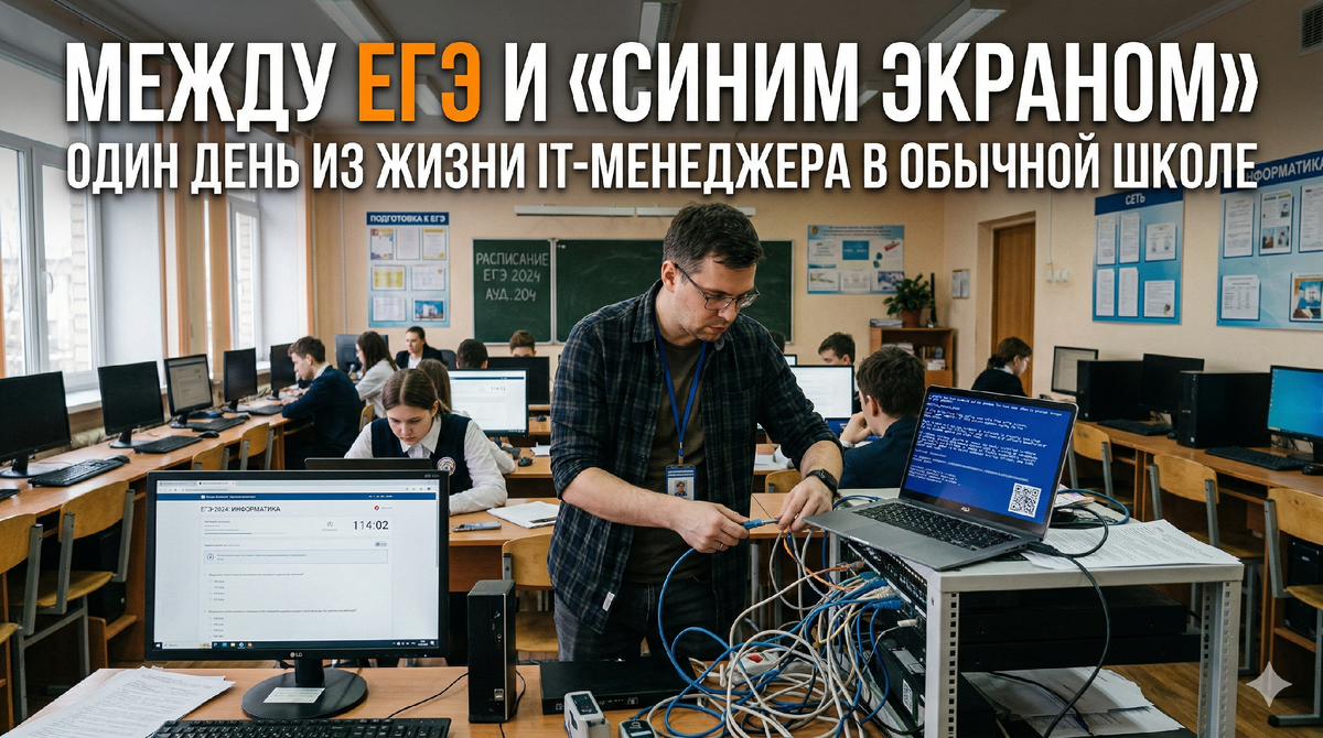 Когда я говорю, что работаю IT-менеджером в образовании, люди обычно представляют две крайности: либо я целый день играю в «Сапера», либо в белом халате настраиваю суперкомпьютеры. Реальность куда прозаичнее и драйвовее одновременно. Имея 18 лет стажа в IT, я видел всё: от серверов в банковских дата-центрах до самодельных сетей в подвалах. Но школа — это особый вид «цифрового зоопарка», где выживает только самый стрессоустойчивый. Мой рабочий день начинается не с кофе, а с проверки мониторинга. Школьное IT — это невероятная смесь технологий: Если вы думаете, что дедлайны в крупных корпорациях — это страшно, вы просто не готовили школу к государственным экзаменам.