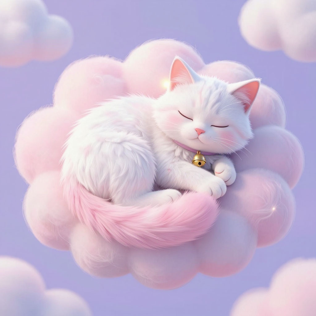 Звали его Пушок. Он был пушистым до такой степени, что казался второй копией своего облака, только с ушами и длинным хвостом. Шерсть у него была белая с розоватым отливом, будто внутри горела маленькая заря. А на шее висел колокольчик — не простой, а Сонный. Когда Пушок потряхивал головой, колокольчик издавал такой тихий перезвон, что сны начинали плавно опускаться на спящий город, мягко приземляясь на подушки и одеяла.