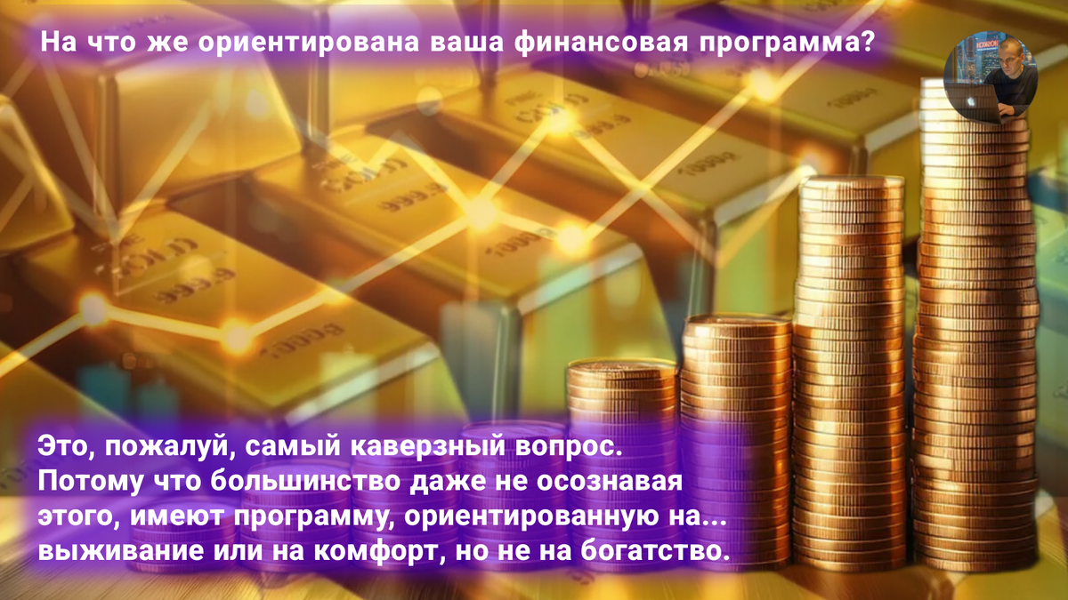 Если разложить это на составляющие, то моя финансовая программа ориентирована на три глобальных вектора.