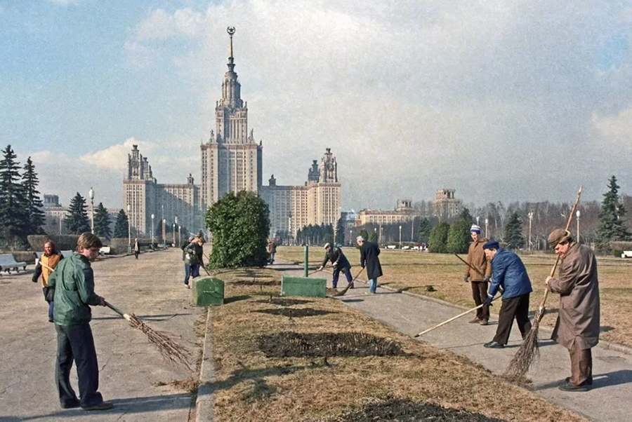 Посмотришь на студентов и аспирантов мехмата МГУ на субботнике — и сразу чувствуешь не парадность, а движение. Не «постановочный кадр про активную молодёжь», а вполне земную сцену: кто-то в пальто, кто-то с лопатой, кто-то щурится от солнца, кто-то явно устал, но всё равно стоит с тем самым видом, когда деваться уже некуда — надо доделывать.