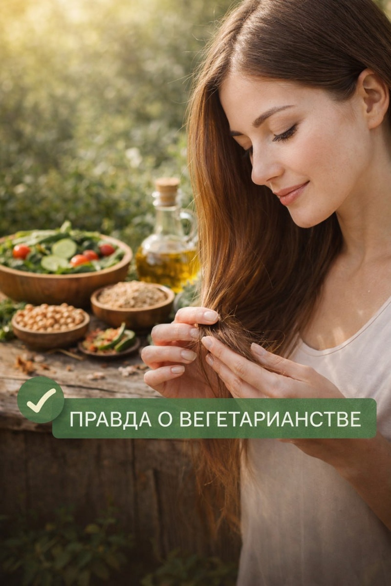 Друзья, сегодня мы продолжаем путешествие в тему вегетарианского питания 🌿 Миф о вегетарианстве №2. Ещё один частый страх, который можно услышать: «Если отказаться от мяса — начнут выпадать волосы, испортятся ногти и зубы…» Но давайте посмотрим чуть глубже. Сами мясоеды далеко не всегда задумываются и подсчитывают, какое количество витаминов они получают ежедневно. А ведь дефициты могут быть при любом типе питания, если оно не сбалансировано. На самом деле растительная диета может быть очень богатой витаминами и минералами, и если грамотно сочетать продукты — никакого дефицита не будет. Состояние волос, кожи и ногтей — это отражение внутреннего баланса организма. Когда в рационе достаточно разнообразных продуктов, тело получает всё необходимое: 🤩витамины и антиоксиданты из овощей и зелени 🤩минералы из бобовых, круп и орехов 🤩полезные жиры из семян и масел Например, железо можно получить не только из продуктов животного происхождения. Оно содержится в 🤩фасоли 🤩зелени 🤩каб