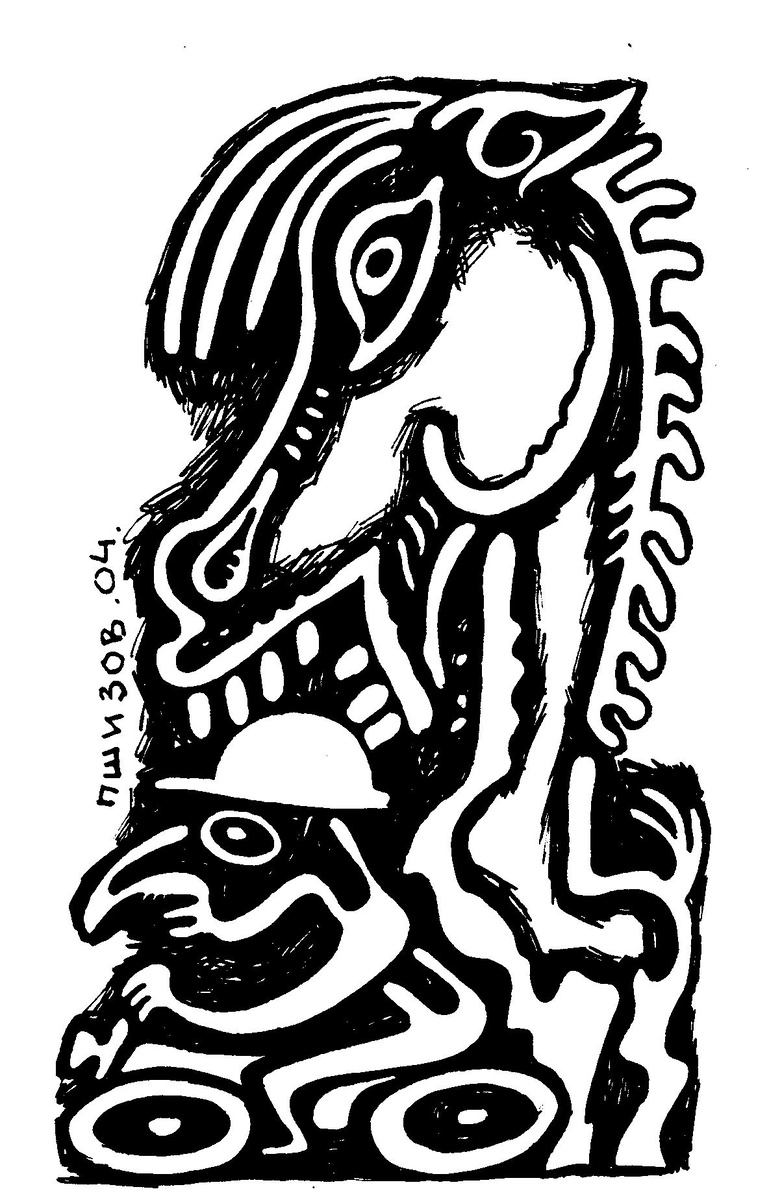 Пшизов Сергей. Рисунок для газеты "Северная правда". Тушь, перо. Кострома. 2004 год.