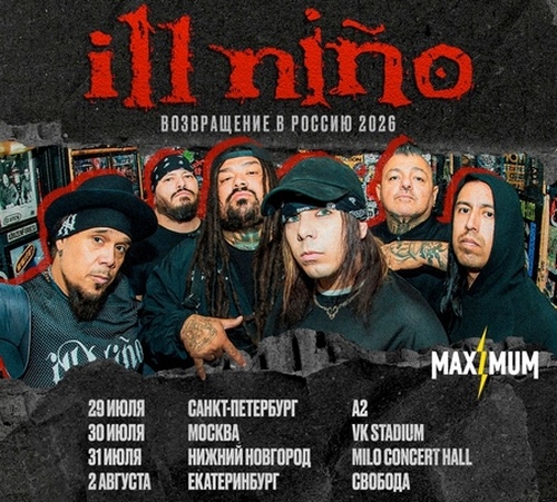 Известная американская ню - метал группа Ill Niño приедет в Россию с концертами в июле 2026 года! Рокеры выступят в Москве, Санкт - Петербурге, Нижнем Новгороде и Екатеринбурге. Мини - тур Ill Niño по России обещает стать одним из самых ярких событий для российских любителей "тяжёлой" музыки в этом году. Расписание концертов: 29 июля - Санкт - Петербург ("A2") 30 июля - Москва ("VK Stadium") 31 июля - Нижний Новгород ("Milo Concert Hall") 2 августа - Екатеринбург ("Свобода") Остаётся только надеяться, что тур группы Ill Niño по нашей стране не сорвётся, и никакие "сохатые" его не отменят. К сожалению, за последний год подобные случаи, когда зарубежные исполнители хотели выступить в России, но впоследствии концерты отменялись, происходили неоднократно.