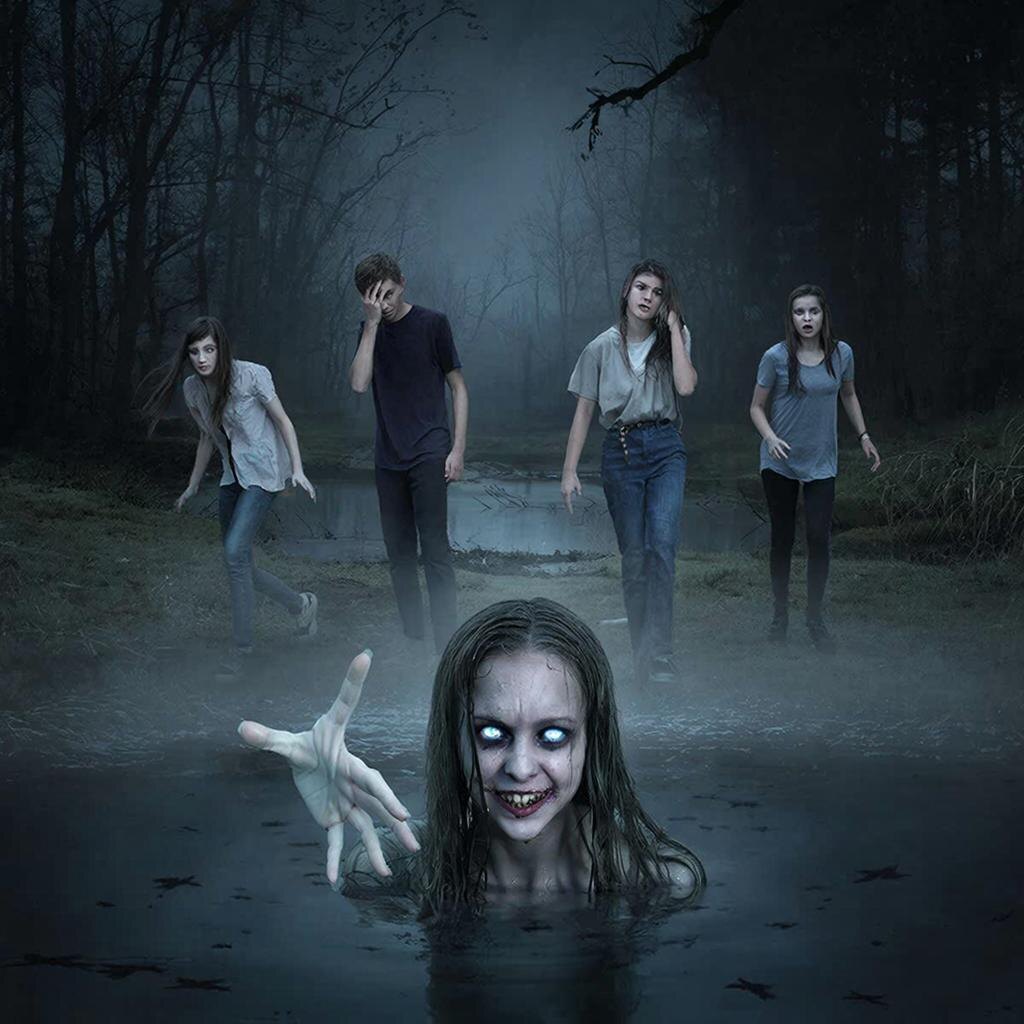 Внезапно за спиной девушек раздался плеск воды и тихий плач. Они обернулись: из болота медленно выходила девушка в мокром белом платье. Её волосы прилипли к лицу, а глаза были пустыми и страшными.