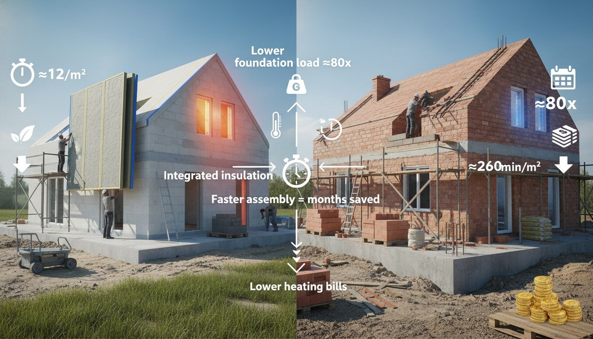 »? Мы в Box House считаем полный цикл — и картинка меняется. SCIP‑панели могут быть дороже «за штуку», но: — монтаж ~12 мин/м² против ~260 мин у кладки; — нагрузка на фундамент до ~80 раз меньше → мелкозаглублённая лента или сваи; — утепление встроено в конструкцию. Итог: дешевле фундамент, месяцы экономии на стройке, меньше денег в недострое и ниже счета за отопление. Вы за долгосрочную экономию или за видимую «экономию» сейчас? 🔍🏡