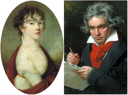 Марши разные нужны, марши разные важны С песнями вроде разобрались, можно теперь и «за марш» поговорить. Слово, как оказалось, не русское, переводится с французского, как ходьба, движение вперёд. А ходить можно по-разному. Смотря по настроению и обстоятельствам. А как понять, какой именно марш играют? Ну, тут всё просто. Ели вы слышите медленную скорбную музыку, с частыми повторениями одного и того же звука, а в голове возникает похоронная процессия с венками, то значит, это похоронный марш. Или траурный. Без разницы. Хотя «Лунную сонату» Бетховена, которую многие сразу узнают по первым аккордам первой части, музыковеды относят именно к траурному маршу. Композитор как бы «хоронит» свою любовь и надежду на счастье. Во второй и третьей части он рассказывает о своих чувствах и переживаниях, о неразделённой любви к графине Джульетте Гвиччарди, которую он любил больше жизни, но родители отказались отдать свою дочь замуж за бедного и безродного музыканта. Графиня Джульетта Гвиччарди и Людв