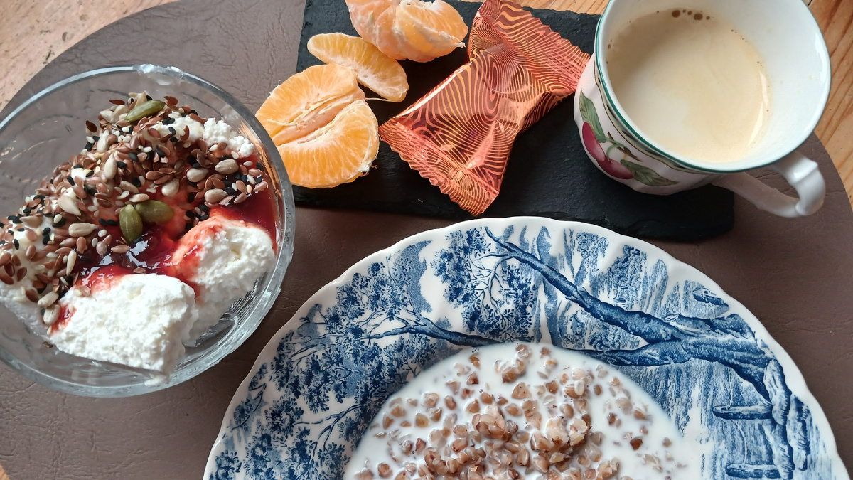 В марте питаемся на 250 руб в день на человека. Сумма в месяц на питание - 7 750 руб на одного и 15 500 руб на двоих. На завтрак сегодня гречка с молоком, творог с ложкой джема и смесью семян. К чашке кофе - клементин и марципан в шоколаде На обед сварила грибной суп-пюре, в тарелки добавила зеленый лук и сушеный лук. На второе - запеченная индейка с овощами Десерт был, как и вчера, из клементина, кофе и сыра На ужин доели запеченную индейку, добавила к ней еще ломтики пастромы из индейки, отварная цветная капуста, помидоры черри (у мужа еще гречка) Меню год назад