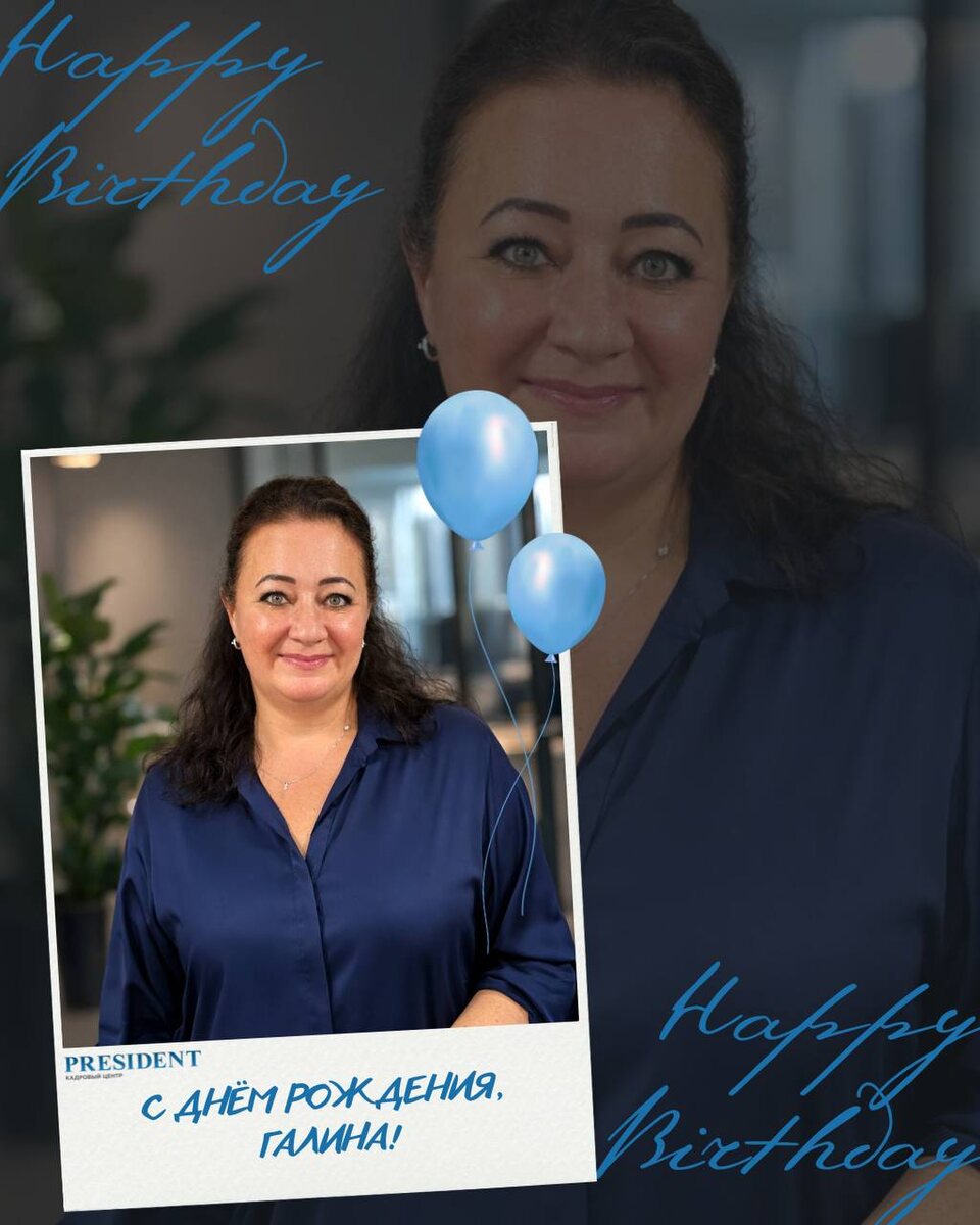 🎉 Сегодня поздравляем с днём рождения Гераскину Галину — менеджера по подбору персонала кадрового центра PRESIDENT