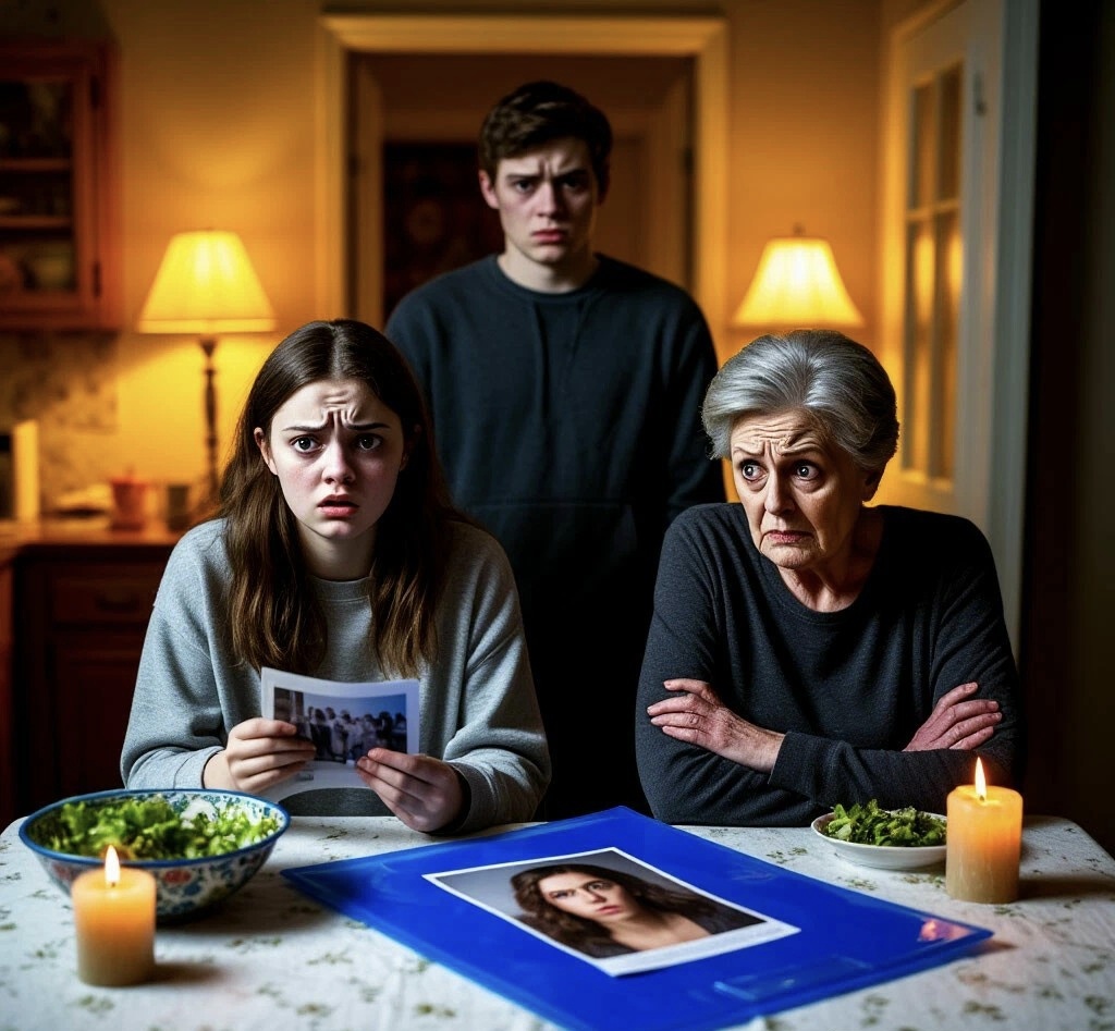 Она кивнула на папку, которая всё ещё лежала передо мной. Игорь перевёл взгляд на папку, потом на меня, и я увидела, как его лицо меняется. Он заметил фотографию, которая выскользнула из папки и теперь лежала на скатерти лицом вверх.