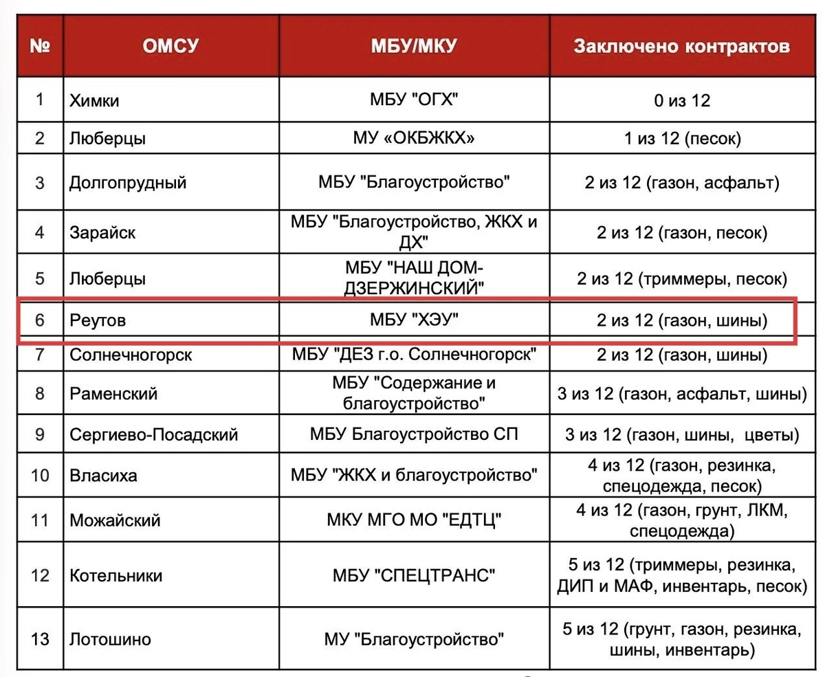 ? 🌱 Казалось бы — весна уже на пороге. Самое время убирать песок, соль и грязь, приводить в порядок дворы, газоны и улицы. Но реальность в ряде округов — совсем другая. 📉 По имеющимся данным, многие муниципалитеты фактически провалили подготовку к сезону: — Реутов — 2 из 12 — В Химки — 0 из 12 контрактов — Люберцы — 1 из 12 — Долгопрудный — 2 из 12 — Зарайск — 2 из 12 — Солнечногорск — 2 из 12 ⚠️ Даже в «лучших» случаях — 3–5 контрактов из 12, что означает одно: никакой полноценной подготовки к весеннему благоустройству просто нет. 💩 Что это значит на практике: — улицы останутся в песке и реагентах — газоны — вытоптанные и неухоженные — дворы — без инвентаря и рабочих — техника и подрядчики — не обеспечены ❗️ Вопрос к главам округов и профильным службам: вы собираетесь вообще запускать весеннюю уборку или снова ждать жалоб, скандалов и пинка «сверху»? СМИ «Мой Реутов» в MAX: https://max.ru/reutov_today