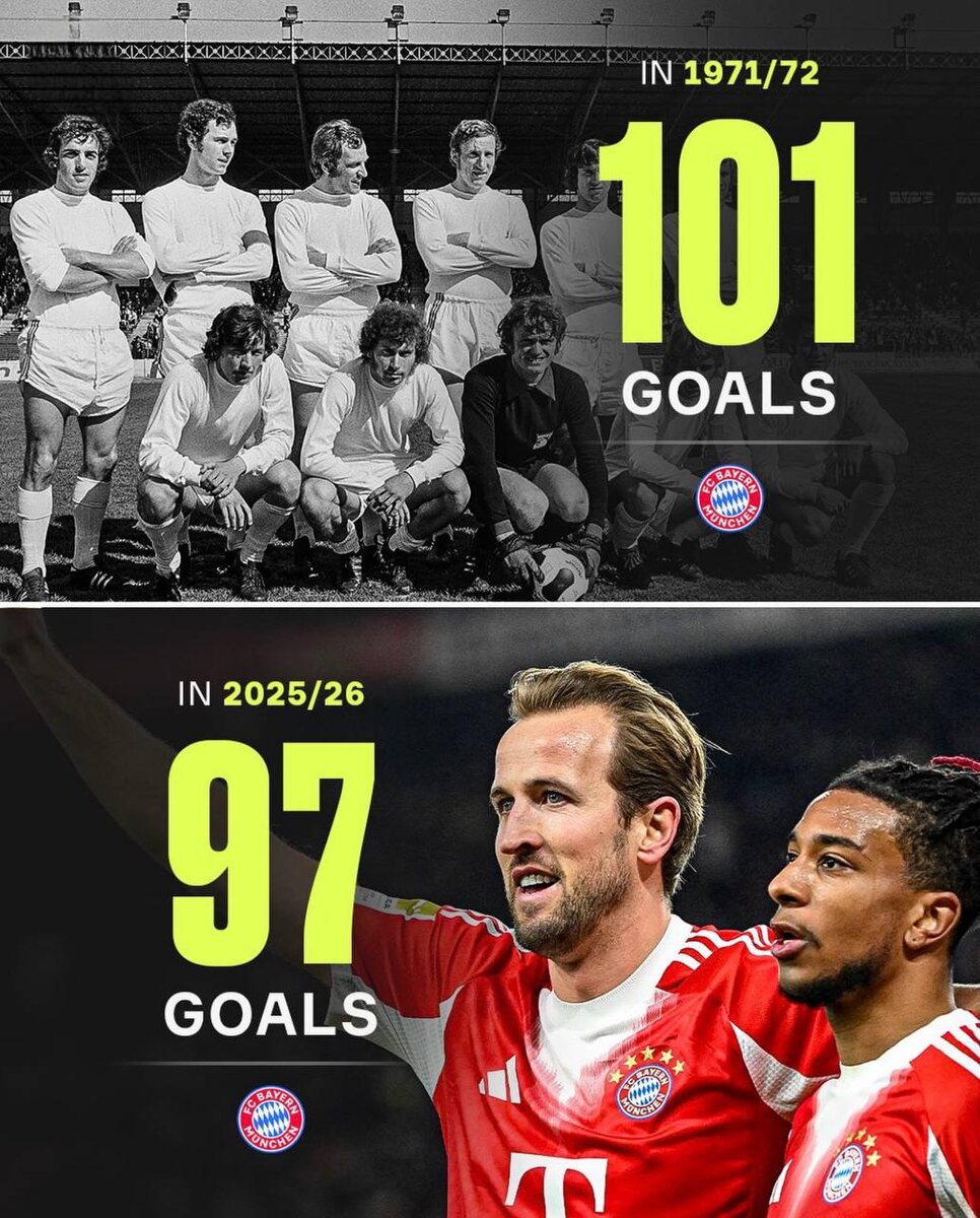 И знаете что? Им осталось забить столько же, чтобы побить собственный же рекорд в Бундеслиге по голам за один сезон 101 гол Бавария забила в сезоне 71/72, и вот уже в этом году они 100% побьют его, остается ждать, в следующем же матче или через… Немецкая машина 😎 ➡️ Подписаться на ФутХайп