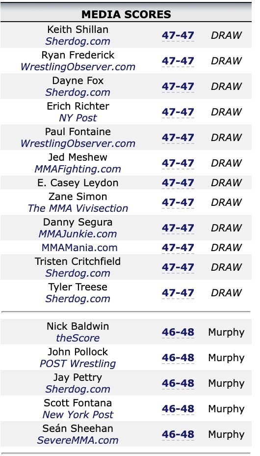 ? На MMA Decisions вышли оценки экспертов по бою Евлоев vs Мёрфи — и там жёсткий расклад: ни один не отдал победу Мовсару. 6 — за Мерфи 12 — за ничью И это при официальной победе Евлоева. ❓Согласны с таким разбором? 👍 — Нет, Евлоев уверенно забрал победу! 🤔 — Соглашусь, спорное решение 👊 Подпишись на Meta MMA | Meta MMA в MAX | Наш канал в ВК